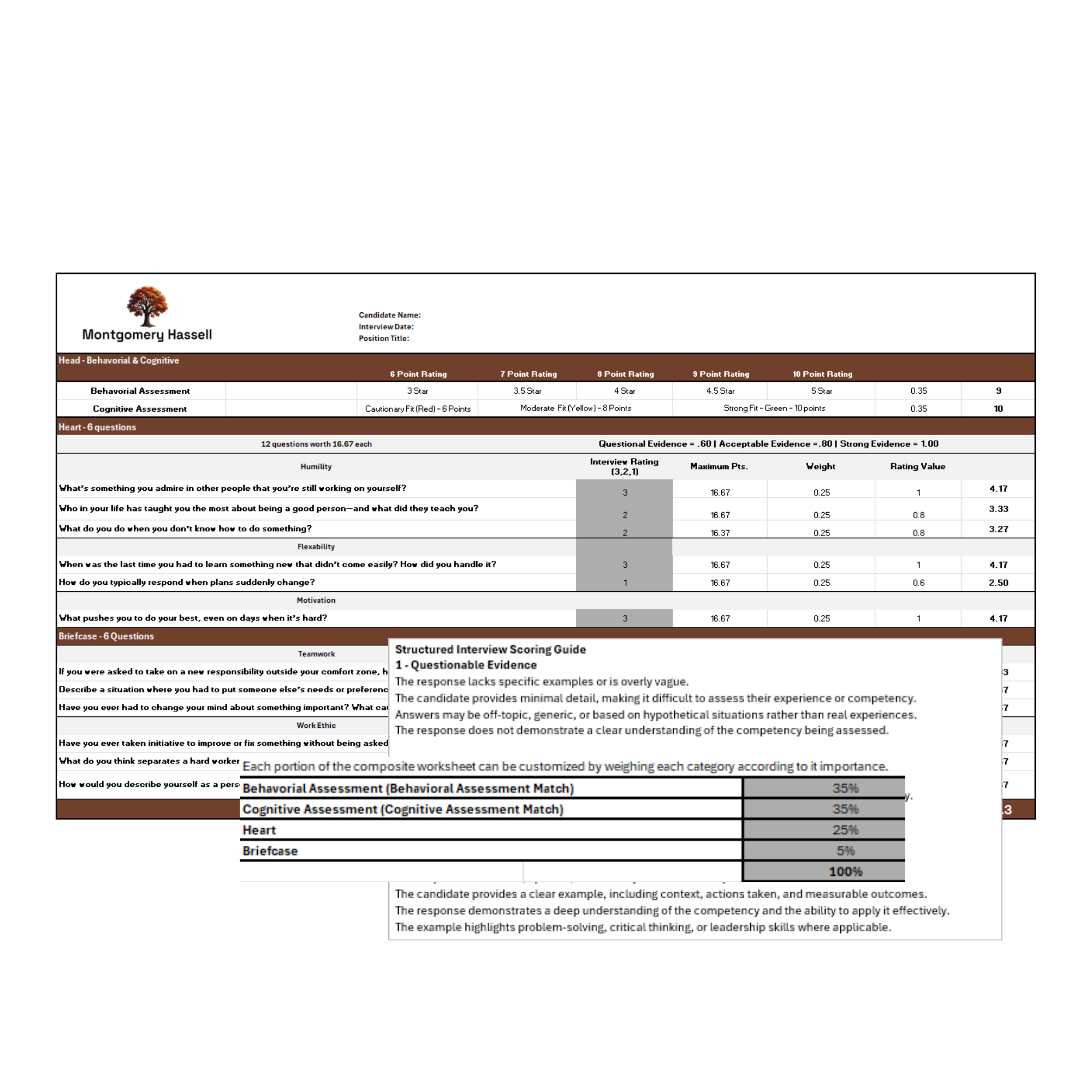 · Evidence-Based Scorecard Interview responses are scored using a standardized rubric and weighted composite scorecard, reducing bias and ensuring decisions are based on evidence—not impressions.